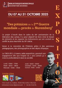 Exposition du 7 au 31 Octobre 2025, avec des échanges adhérents élèves grâce à l’intervention de Monsieur Mulatier, responsable de la bibliothèque et nouvel adhérent FNDIRP.