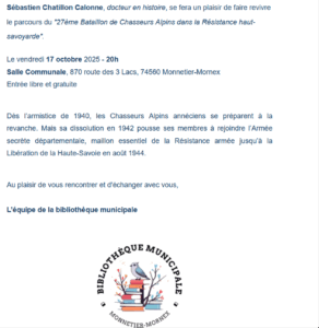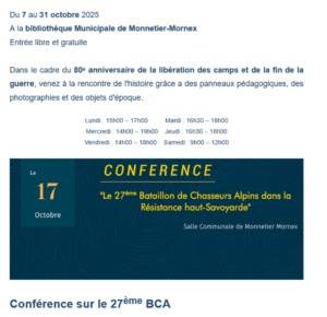 Exposition et échange du 7 au 31 Octobre 2025 à la bibliothèque de Monnetier-Mornex